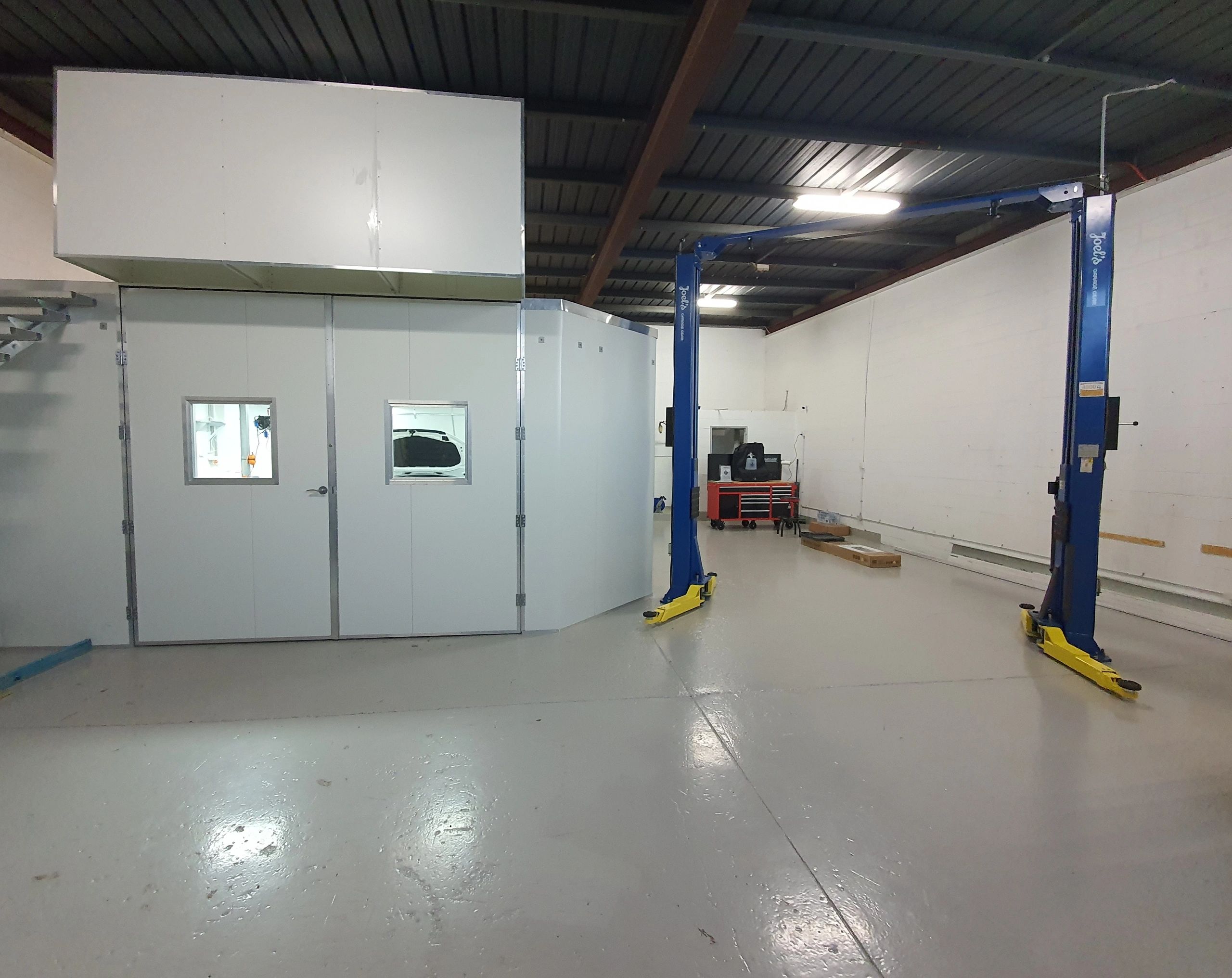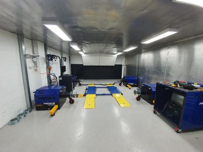 To achieve this the exhaust fans on the room were sized to ensure proper exhaust extraction and air flow through the room to prevent heat soak and heat build up in the room. To further help maintain and keep the vehicle's engine temps cool, we opted for the largest vehicle cooling fan that Mainline offers.